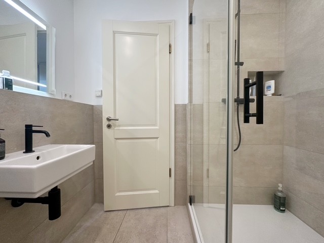 Keramik, wertigen Armaturen und Deckenspots. Hochwertige, doppelverglaste Holzfenster in weiß