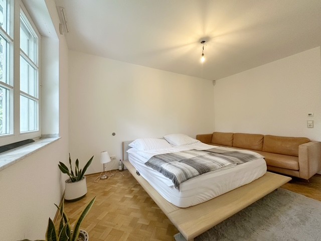 gemütliche Loungeecke. Ein ruhiges Schlafzimmer (ca. 15 m²) mit einem modernen Tageslichtbad