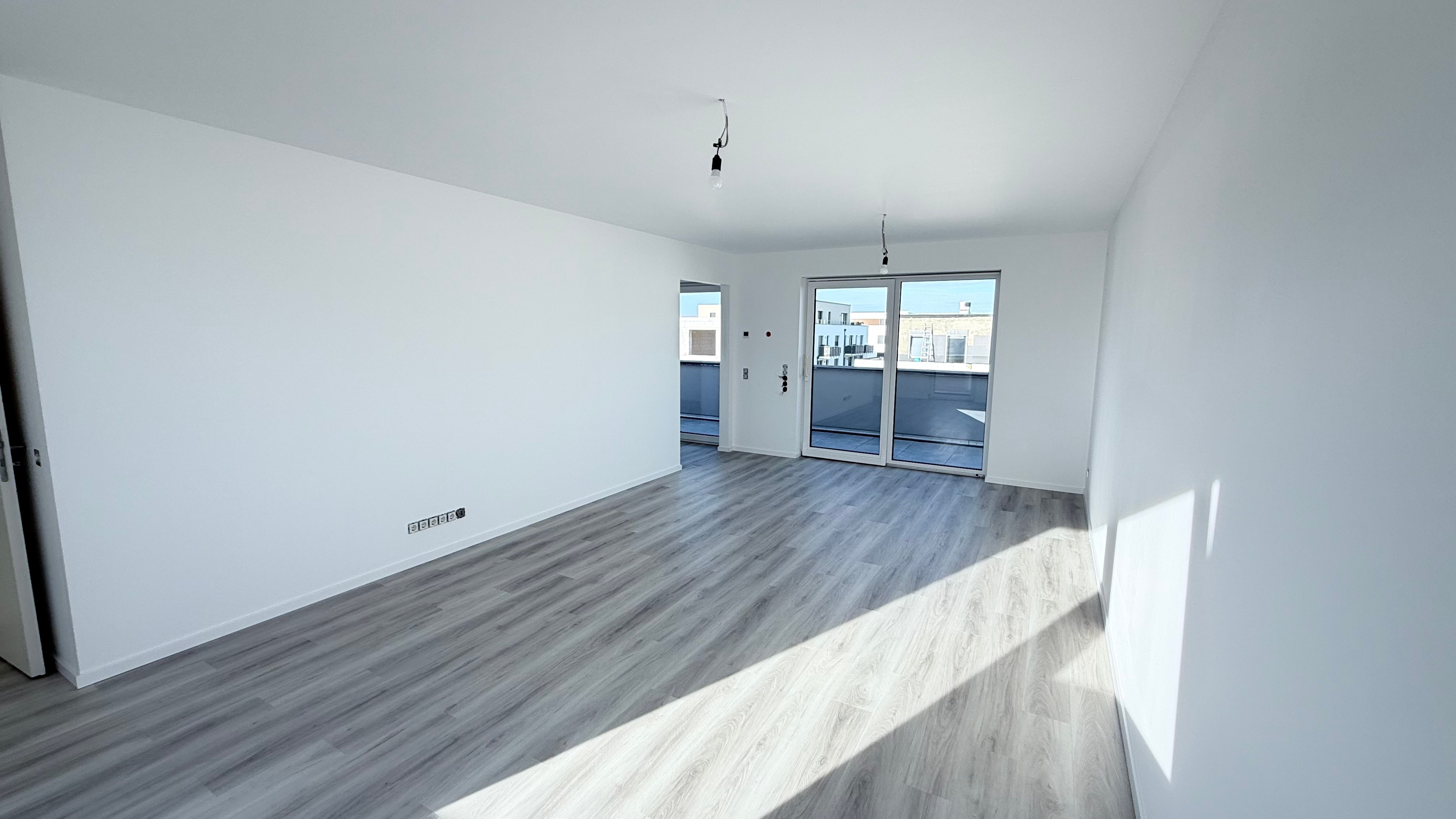 Die Wohnung überzeugt durch ihre helle, offene Raumgestaltung und eine umlaufende Terrasse mit Balkon, die den Wohnraum nach außen erweitert.